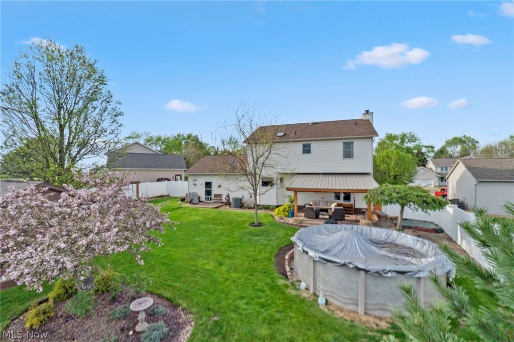 Welcome to 114 Shawnee Cir. Tucked at the end of a quiet cul de sac in Louisville, this is a true one owner home, and every square foot shows it. From the moment you pull up, the pride of ownership hits you. Manicured landscaping. Flowering redbud. Crisp trim. Balcony over the front entry. This one was loved. Inside, the heart of the home is an open concept kitchen built to gather people. Granite island, stainless appliances, rich cabinetry, and a bright dining space wrapped in windows that pull the backyard right in. Flow into the family room where a full brick fireplace anchors the hardwoods and french doors walk you straight out to the patio. Upstairs the primary suite stretches out with space for a sitting area, a walk in closet, and an updated ensuite with dual vanities, walk in shower, and a skylight that floods the space with morning light. Two additional bedrooms give your family room to grow. The basement is already finished for bonus living, with a hobby room, a rec space, and here is the kicker: it is already plumbed for a third full bath. Equity baked in. Add a guest suite, a teen retreat, or an in law setup without tearing walls apart. Then there is the backyard. This is not a yard. This is a lifestyle. A covered paver patio framed in cedar beams with a tropical ceiling fan and string lights. An above ground pool. Full vinyl privacy fencing. A playset. A storage shed. Mature trees. Room to breathe. You will host every cookout, every birthday, every Friday night from now until forever right here. Cul de sac lot. Louisville schools. Two car attached garage. Move in ready with room to add value.