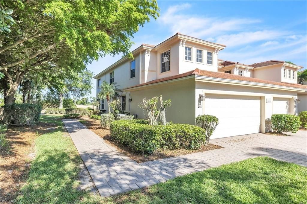 A fantastic opportunity awaits to own a piece of paradise with this 1421 sq. ft. coach home boasting stunning views of the golf course and lake. Enjoy breathtaking sunrises with the eastern rear exposure of this home. Featuring 2 bedrooms plus a den, 2 baths, and a spacious 2-car garage on the lower level, this home is move-in ready and being offered turnkey with numerous upgrades already completed. Some of the enhancements include tile and LVP flooring throughout, crown molding, white cabinets with an attractive backsplash in the kitchen, newer appliances, elegant window treatments, tray ceilings in certain areas, a picture window in the lanai to enhance the view, and more. Situated on a corner lot, this home offers added privacy. Upon entering, you are welcomed by an open family room area adjacent to the dining room, kitchen, and breakfast nook. The split bedroom layout and den provide privacy for guests from the master bedroom suite. With a 2-car garage and a large lanai offering a great view, this home has it all. Idlewild community amenities include a pool, clubhouse, and small fitness area. Roofs were replaced within the last 5 years, and all coach homes were externally painted. As a member of the Verandah Club, residents have access to a full array of amenities such as 2 championship golf courses designed by Bob Cupp and Jack Nicklaus, a tennis complex, pickleball courts, a state-of-the-art fitness center, a resort-style community pool, 9 miles of walking or biking paths, bocce courts, a playground, a dog park, kayaks on the Orange River, multiple restaurants, and a social calendar to meet everyone's needs. Come secure your place in Paradise today.
