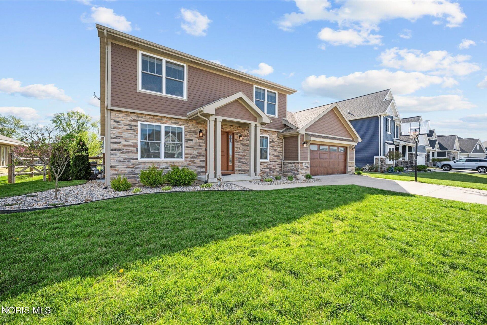 Welcome to this beautifully maintained 2019 custom built home located in the desirable Pheasant Farms in Bowling Green, OH. Offering over 2,000 sq ft, this 3-4 bedroom, 2 1/2 bath home blends modern comfort with thoughtful upgrades. Enjoy an open-concept layout with a spacious living room, gas fireplace & abundant natural light. The kitchen features Profile GE appliances, ample cabinetry, lighted pantry & oversized bar for entertaining. The primary suite offers a private retreat with double sinks, step in shower & walk-in closet. Enjoy peace of mind with the Durable Mohawk waterproof/scratch resistant flooring throughout designed for both style and function. The full basement provides excellent potential for future finishing or storage. Outside, relax on the concrete patio overlooking a 14'x33' inground pool(2021) perfect for relaxation & entertaining. This home features a 2.5 car garage with overhead storage potential. Located near parks, schools and local amenities. Schedule your private showing now.